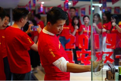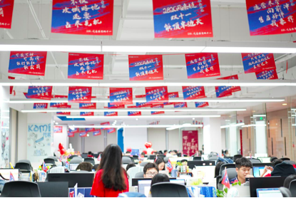 10号晚上电商办公室也组织了一场别具生面的“我在东升国际双十一”文化活动为双十一销售助威,运营中心副总裁许清池,共享中心副总裁刘莹,女性健康产业发展部总裁许自淡等集团多位领导也赶赴现场,在零点时一同等待双十一销售拉开序幕。